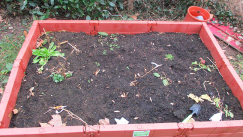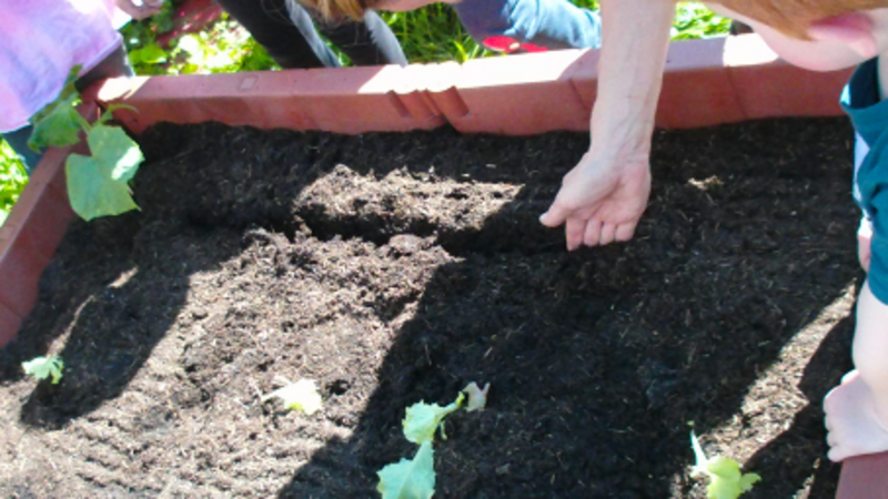 In Kooperation mit der EDEKA Stiftung haben wir ein "Hochbeet für Kids" angelegt und pflanzen dort Gemüse an.
