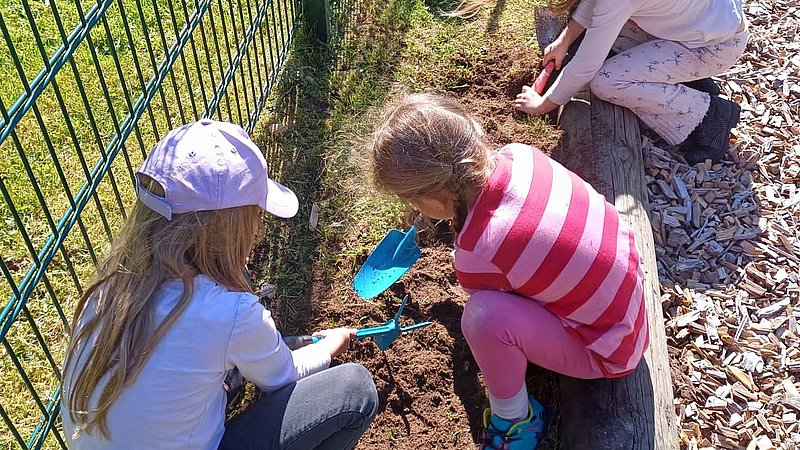 Nachhaltige, naturnahe und bunte Umgestaltung des Kindergartengartens.