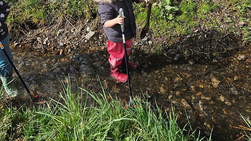 Durch die neuen Bücher zum Thema „Umwelt / Nachhaltigkeit / Müll“ kamen die Kinder in viele Gespräche. Dadurch wurden einige Sichtweisen überdacht und sie hatten viele Fragen. Sie kamen dann auf die Idee, raus in die Natur zu gehen und den Müll von den Straßen zu sammeln. Wir haben das im Zusammenhang mit dem ‘Clean-Up‘ Day gemacht. Beim Müll sammeln waren die Kinder sehr schockiert, wie viel Müll wir gefunden haben; was alles zum Vorschein kam und wie viele gute Sachen rum lagen. Ab diesem Zeitpunkt sind wir ungefähr einmal pro Woche Müll sammeln gegangen. Die Kinder wollten dann nach ein paar Monaten intensiven Sammelns auf Straßen und Wiesen in den Bach steigen und das Wasser dort sauber halten.