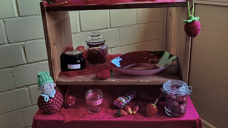 Die Kinder haben ein kleines Erdbeermuseum gebaut und eingerichtet.