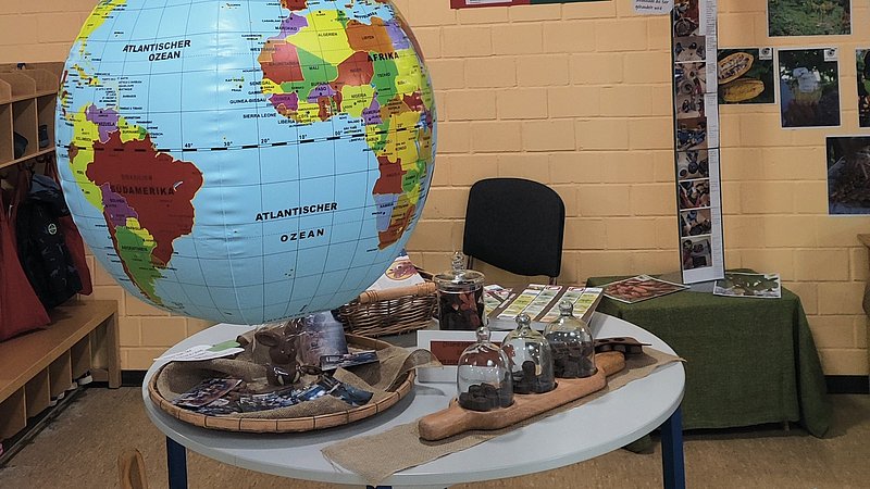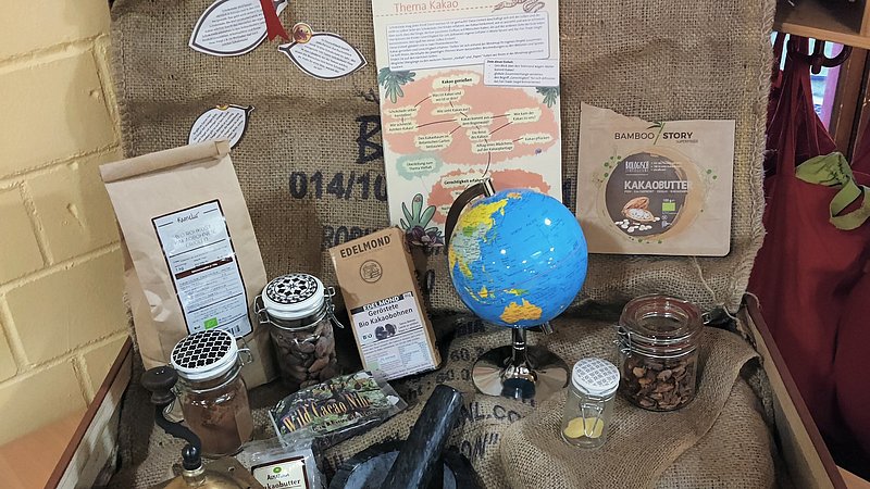 Das Projekt von der Kakaobohne zur Schokolade in einen Koffer gepackt.