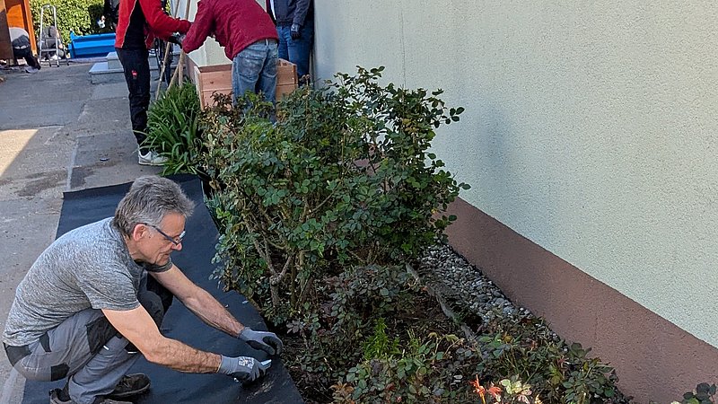 Unser Kooperationsprojekt mit der Gruppe von Audi hatten wir etwas unterschätzt, da wir in der Vorplanung sehr viele Einzelprojekte eingebaut haben, wie zum Beispiel neue Fliese für die Rabatten, Garten- und Kinderhütte streichen, Reparaturen, Barfußpfad erneuern und so weiter. Das war eine echte Herausforderung, auch hier die Kinder sinnvoll mit einzubeziehen. Durch gute Kommunikation und Koordination und ein tolles Team hat es dann aber doch geklappt.