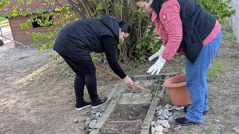 Besonders schön und wichtig für unsere Ernährung ist das neue Hochbeet. Der Barfußpfad wurde auch neu gestaltet.