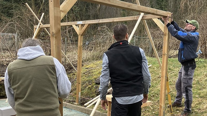 Oder: Erforschen der Gegebenheiten an der Hütte. Gemeinsam Ideen sammeln für weitere Schritte. Gemeinsam Entscheidungen treffen was umgesetzt werden kann.