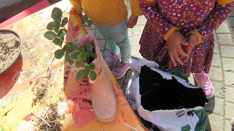 Anbau von Kräuter- und Heilpflanzen in der Kita.