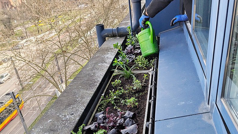 In einem zweiten Schritt kartierten die Schülerinnen und Schüler der Carl-Hofer-Schule, die aus dem Garten- und Landschaftsbau kommen, die vorhandenen Blumenkästen. Sie notierten die Maße, bereits vorhandenes Pflanzmaterial sowie die Ausrichtung bzw. Lage der Blumenkästen. Zurück in der Schule wurden die erhobenen Daten ausgewertet und ein Plan erstellt, welche Kästen am besten für die Pilotierung bepflanzt werden sollten. Hierbei wurde entschieden, dass 24 Blumenkästen renaturiert werden und dabei alle Himmelsrichtungen bedacht werden sollen. So ist es möglich, verschiedene Substrate zu testen, unterschiedliche Pflanzen zu setzen und unterschiedliche Standortbedingungen zu untersuchen. Um das entwickelte Pflanzkonzept umzusetzen, mussten bei lokalen Händlern Erden und Pflanzen eingekauft werden.