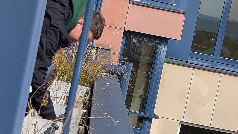 Nachdem alle Pflanzen und Erden beschafft und die Steuerungs- und Versorgungsmodule gebaut wurden, musste alles vor Ort eingebracht und montiert werden. Zunächst wurden die Erde für intensive Dachbegrünung sowie Schafswolle (als organischer Dünger) in die ausgewählten Blumenkästen eingebracht, anschließend die Pflanzen gesetzt. Ein Teil der Blumenkästen wurde ohne Dünger befüllt, um auch hier zu sehen, wie sich die Pflanzen entwickeln. Danach wurden die Module installiert und die Messtechnik in die Kästen gesetzt. Währenddessen kümmerte sich der Hausmeister des Seminars um die Erneuerung bzw. Reaktivierung der vorhandenen Wasserleitungen. Die hierfür benötigten Ersatzteile wurden zum Teil neu angeschafft oder mit dem hauseigenen 3D-Drucker angefertigt.