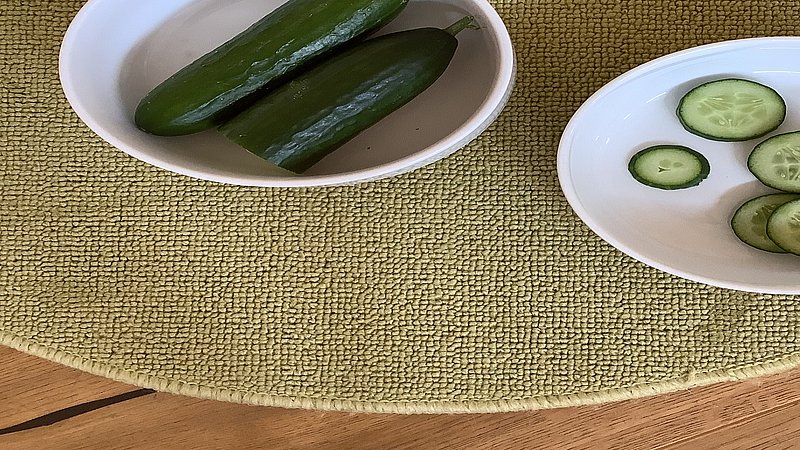 Es gibt sehr viele unterschiedliche Gemüsesorten. Die Kinder sortieren die jeweiligen Pärchen zusammen und sehen dabei den Unterschied beim Querschnitt. Im Anschluss daran probieren wir eine Gurke.