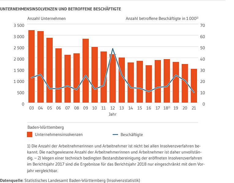 Statistisches Landesamt Baden-Württemberg: Unternehmensinsolvenzen seit 2003 (zuletzt aufgerufen 09.05.2022)