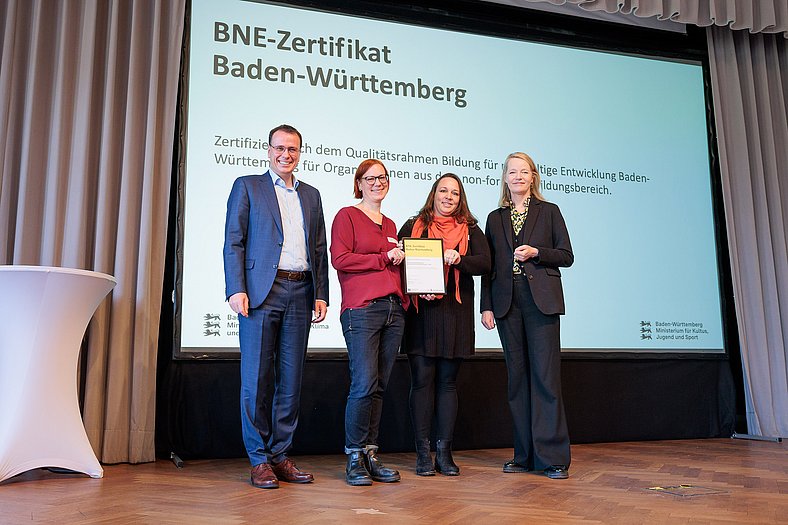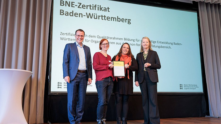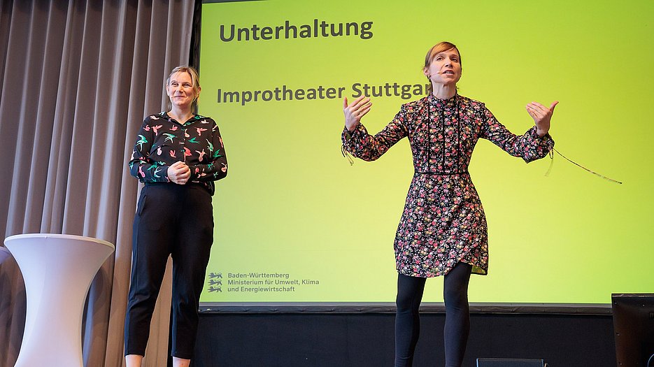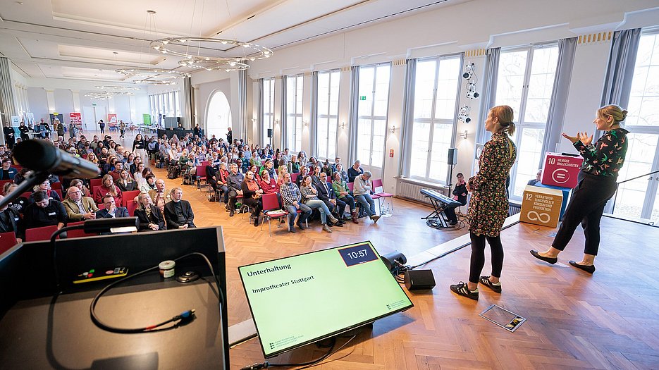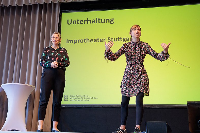 Umweltministerin Thekla Walker MdL und Kultusstaatssekretär Volker Schebesta MdL eröffneten das Programm. Danach gab es eine BNE-Zertifikatsverleihung, eine Keynote von JProf. Dr. Steve Kenner (Pädagogische Hochschule Weingarten) über Demokratiebildung und einen Beitrag des Improtheaters Stuttgart zum Mitmachen.