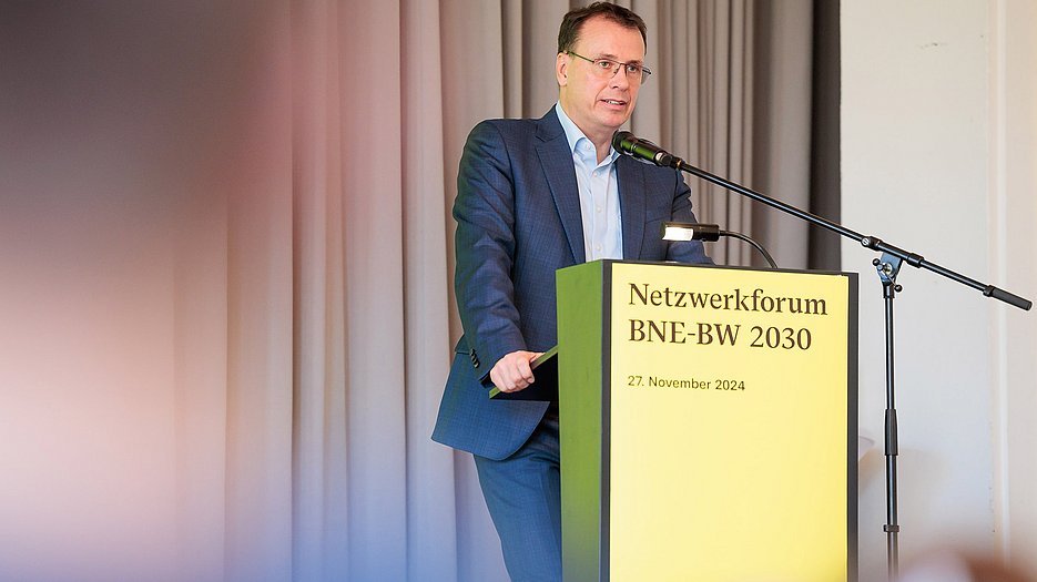 Am 27. November 2024 trafen sich rund 200 Multiplikatorinnen und Multiplikatoren zum 3. BNE-BW 2030 Netzwerkforum im Kursaal Bad Cannstatt.