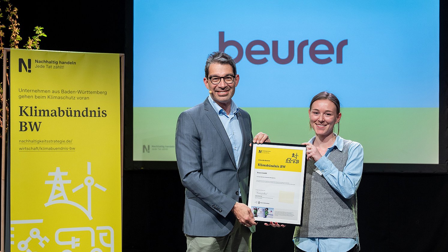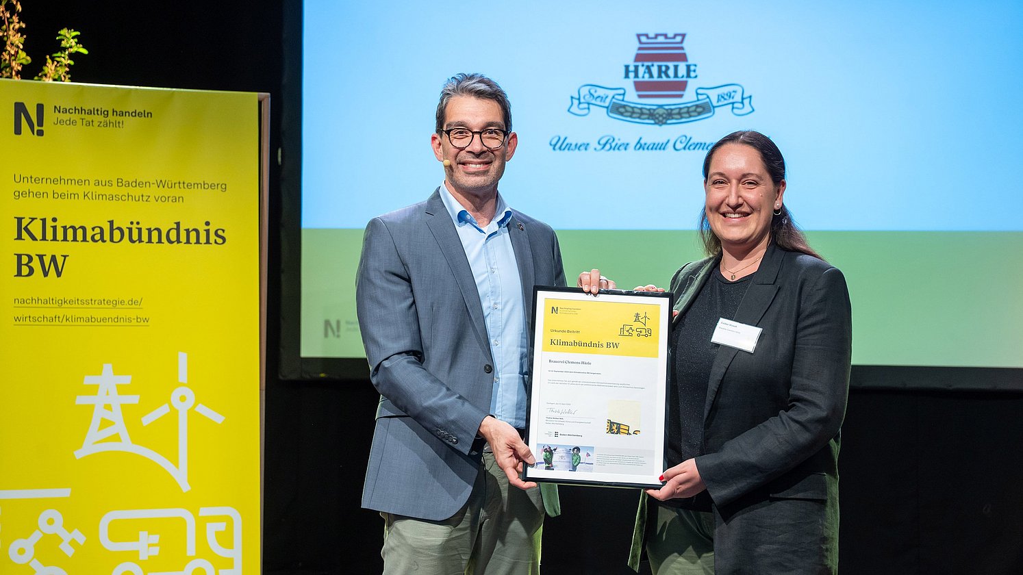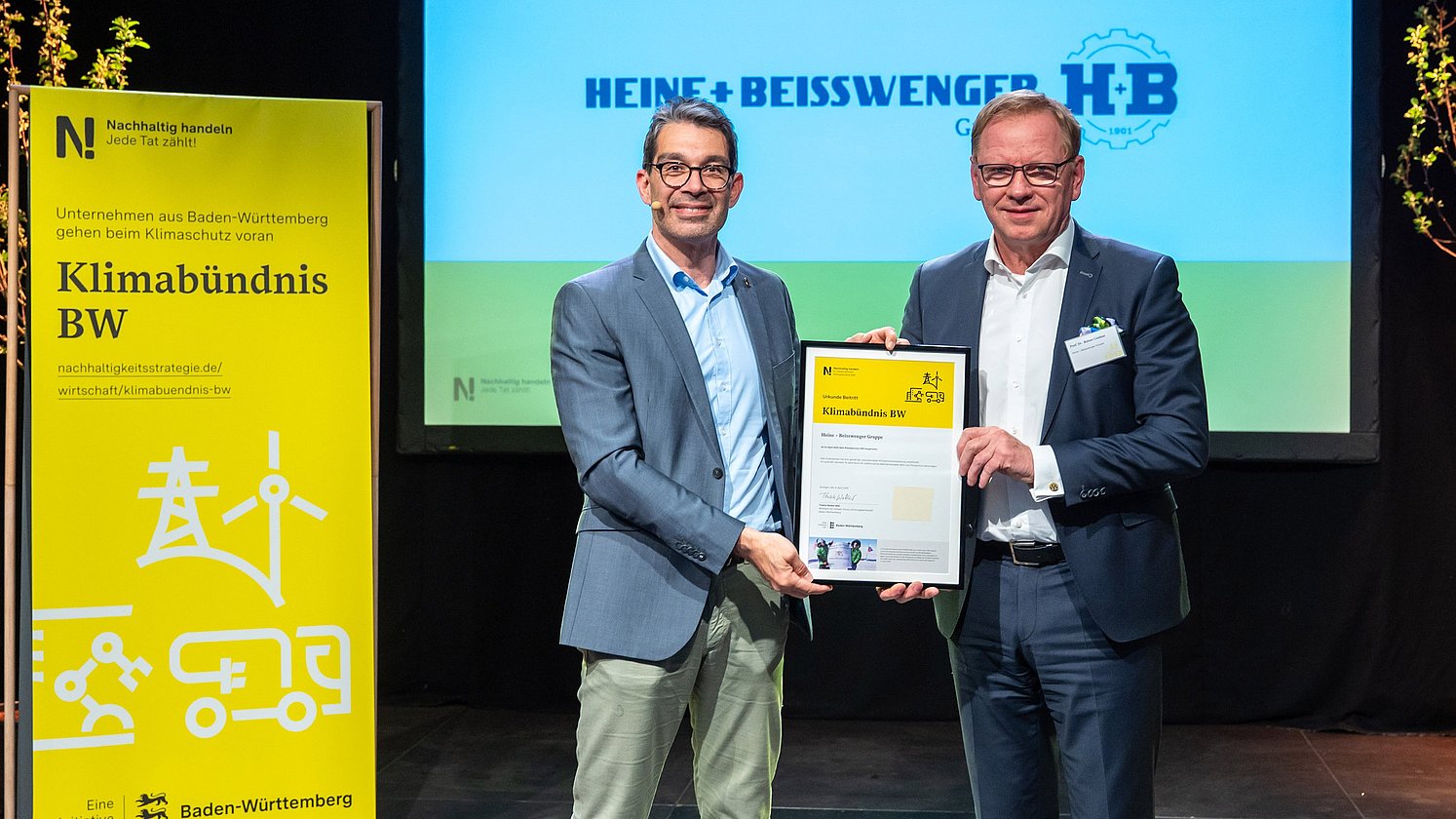 Am 9. April nahmen rund 70 engagierte Teilnehmerinnen und Teilnehmer am Klima-Abend im Im Wizemann teil. Professorin Kathrine von Graevenitz, stellvertretende Leiterin des Forschungsbereichs „Umwelt- und Klimaökonomik“ am Leibniz-Zentrum für Europäische Wirtschaftsforschung (ZEW), eröffnete den Abend und gab spannende Einblicke zum Thema Energiewende. Ergänzt wurde ihr Vortrag durch ein Best Practice Beispiel von der J. Schmalz GmbH, vertreten durch Andreas Beutel, Geschäftsführer des Klimabündnis BW-Unternehmens. Der Höhepunkt war die feierliche Urkundenverleihung an 11 neue Klimabündnis BW-Unternehmen durch Staatssekretär Dr. Andre Baumann MdL.