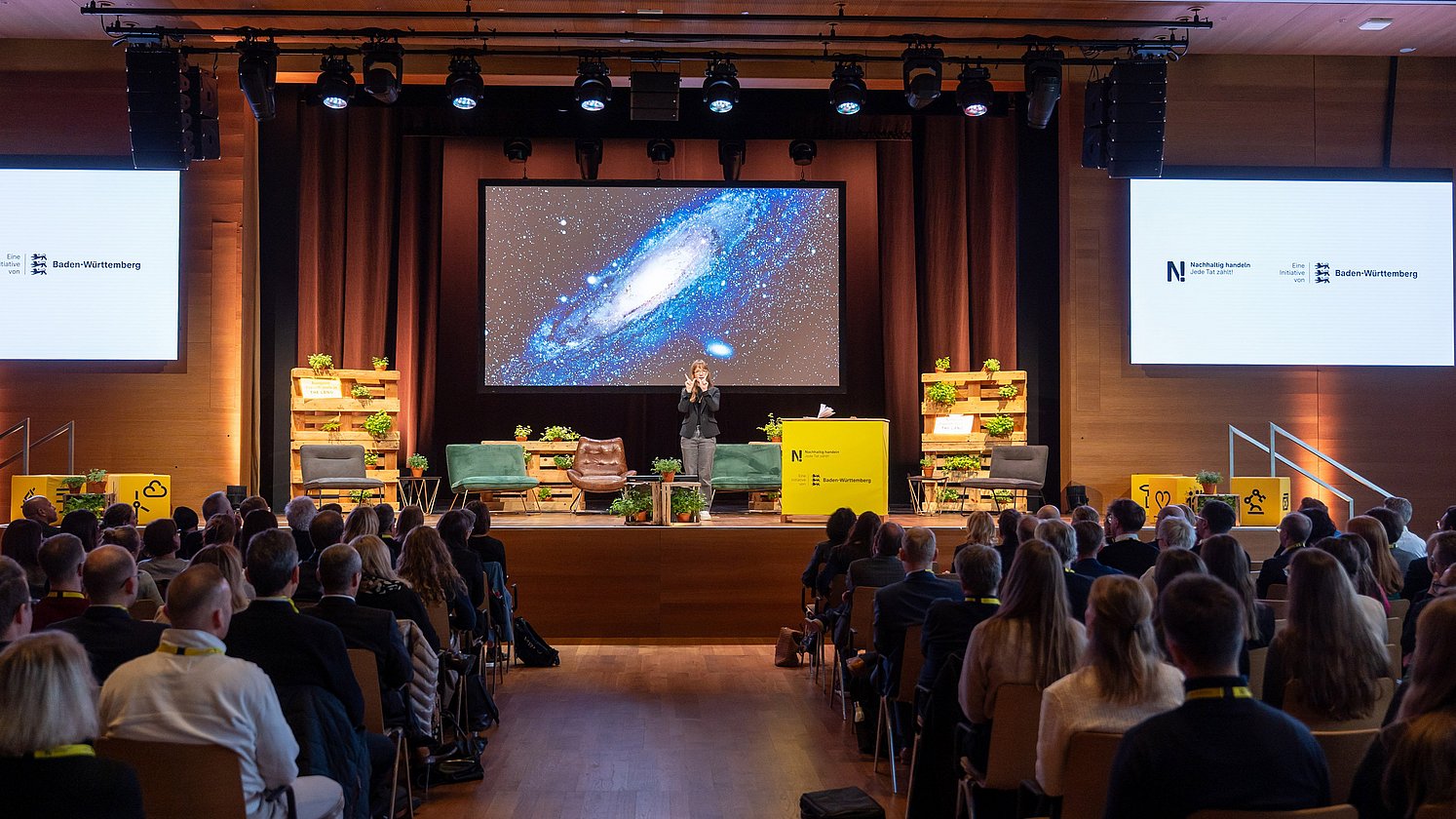 Nach der Begrüßung durch Umweltministerin Thekla Walker MdL setzte Dr. Insa Thiele-Eich, Meteorologin, Klimawissenschaftlerin und angehende Astronautin, mit einer inspirierenden Keynote starke Impulse zu den Auswirkungen des Klimawandels auf unsere Erde und die Wirtschaft.