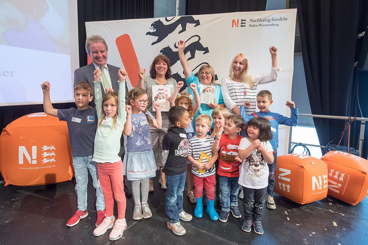 Am 12. Juli 2019 hat Herr Minister Franz Untersteller die teilnehmenden Kindergärten und Kindertagesstätten gewürdigt. Im Rahmen einer feierlichen Preisverleihung im Jugendhaus „das CANN“ in Stuttgart-Bad Cannstatt hat er den Siegern die Preise übergeben. Alle teilgenommenen Kindergärten und Kindertagesstätten erhielten eine Urkunde.