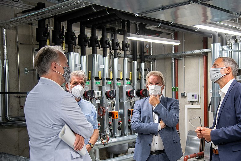 Während Ministertour der Nachhaltigkeitstage beim Neubau der Stadtwerke Leinfelden Echterdingen.