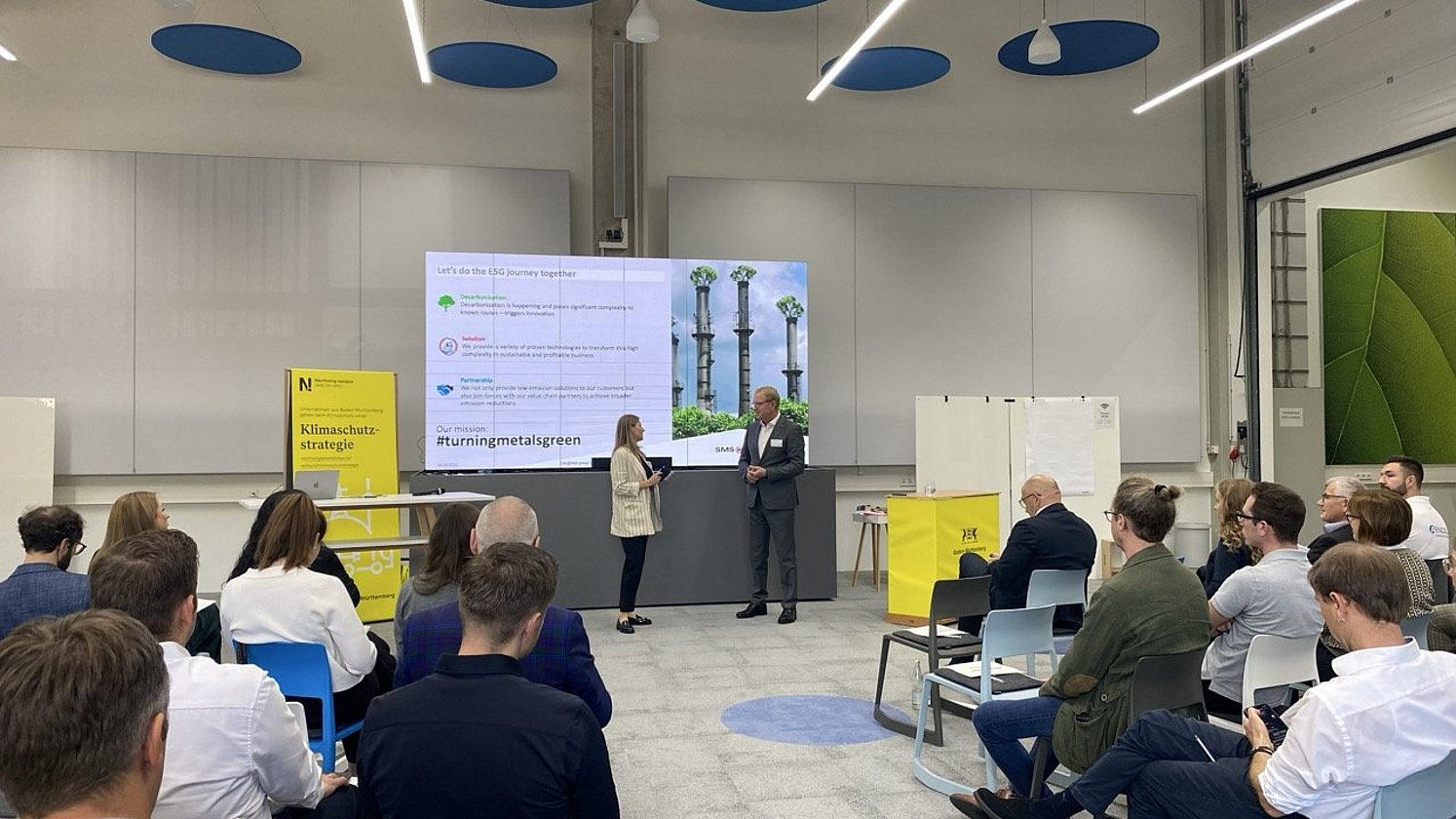Bei schönstem Herbstwetter begrüßten Thuan Nguyen vom Ministerium für Umwelt, Klima und Energiewirtschaft und Bernd Weidner, Geschäftsführer der ARNOLD UMFORMTECHNIK GmbH & Co. KG, die Teilnehmenden. Anschließend gab Prof. Dr. Rainer Lindner, Mitglied des Aufsichtsrats der SMS Group GmbH, einen Überblick über die Bedeutung der Stahlindustrie sowohl für die Wirtschaft als auch den Klimaschutz und sprach zu den Möglichkeiten der Zusammenarbeit in der Lieferkette zum Erreichen von Klimazielen. Olga Demchenko, Expertin für Klimaschutz und Nachhaltigkeit in der Stahlbranche, informierte darüber, wie Grüner Stahl zum Klimaschutz beitragen kann. Zudem zeigte Michael Pult, Leiter Marketing und Sustainability der ARNOLD UMFORMTECHNIK GmbH & Co. KG, auf, wie jede Schraube ein Klimaschützer sein kann. In der anschließenden Panel-Diskussion wurden weitere Perspektiven, Ansätze und Lösungen thematisiert.