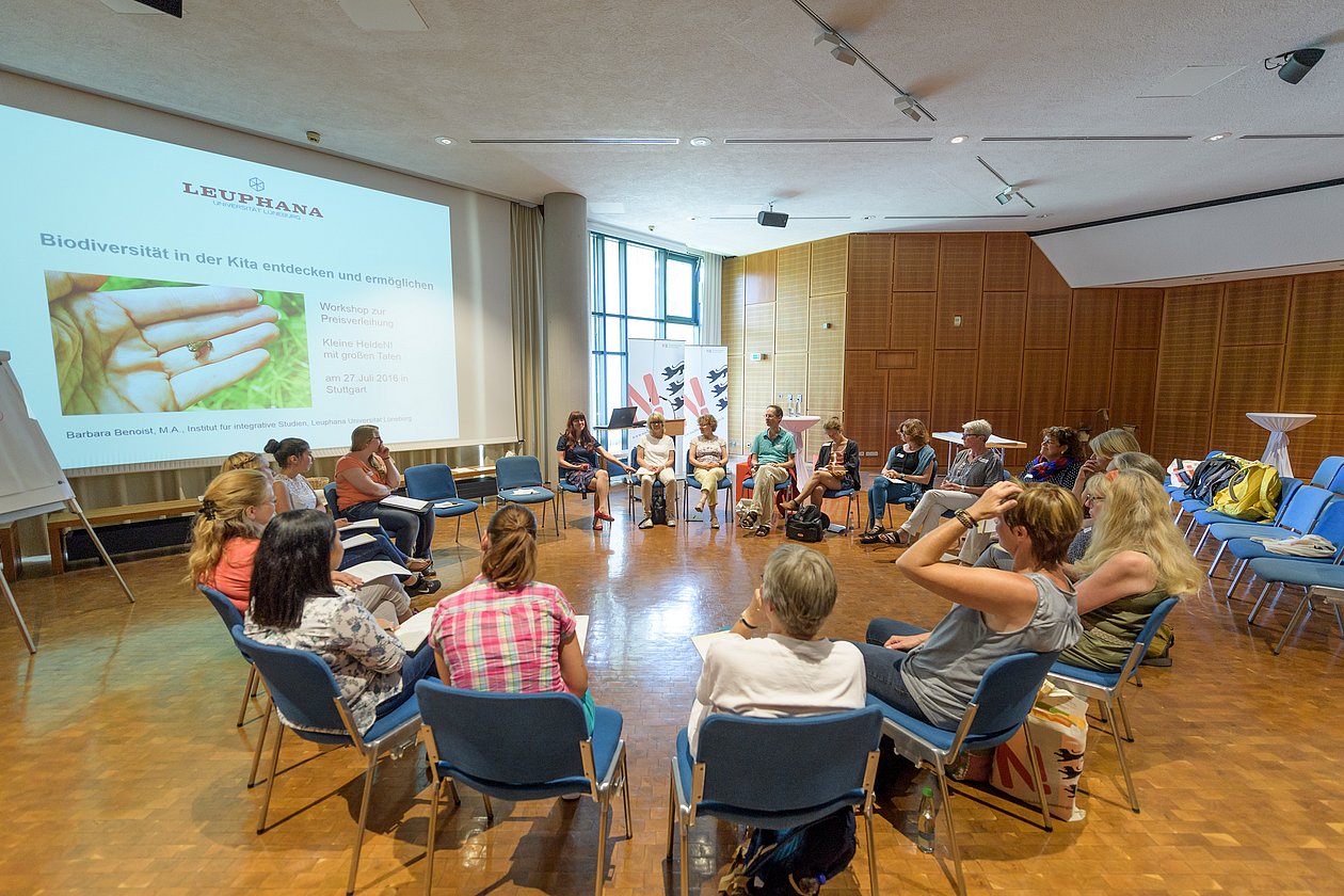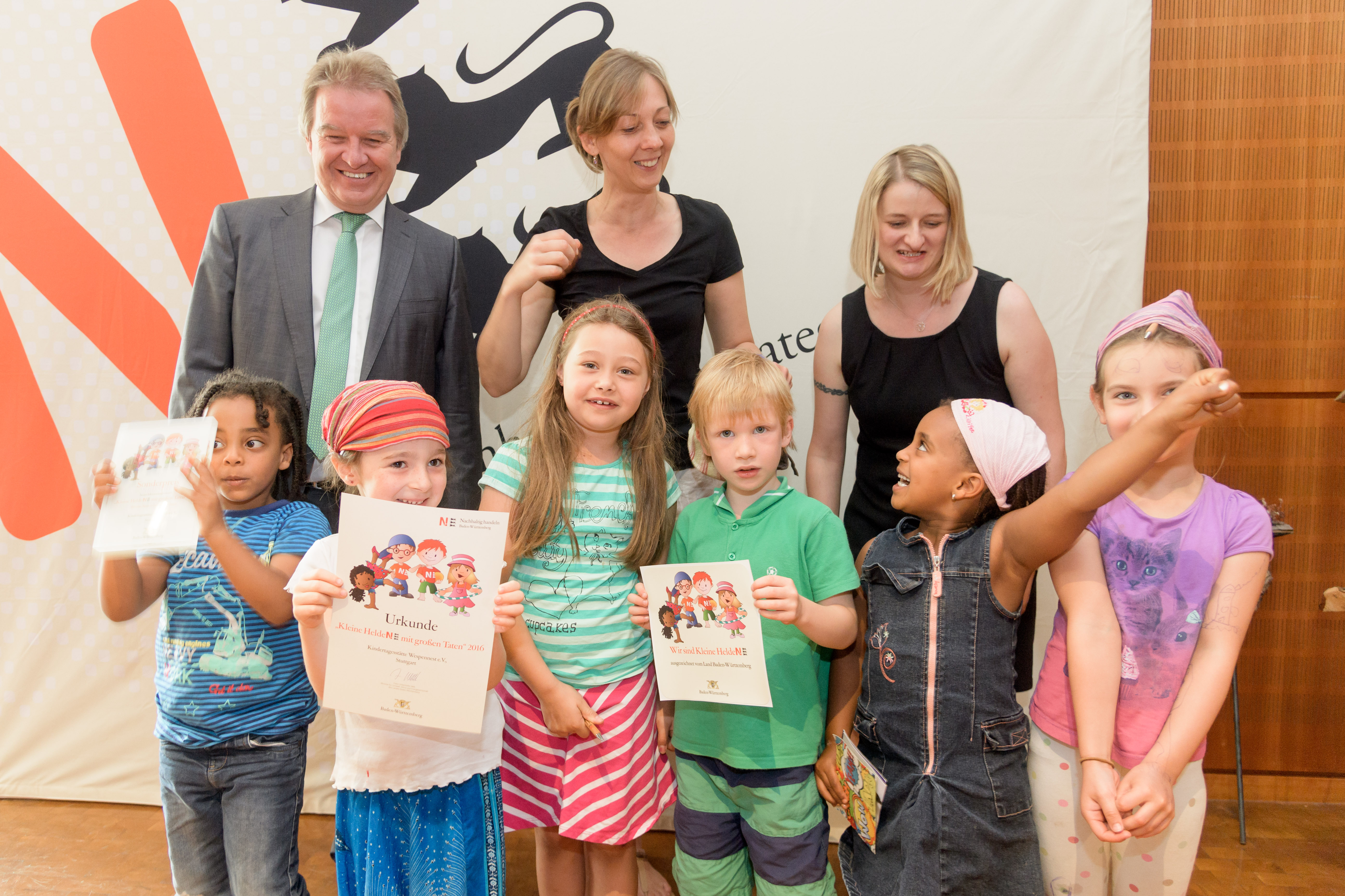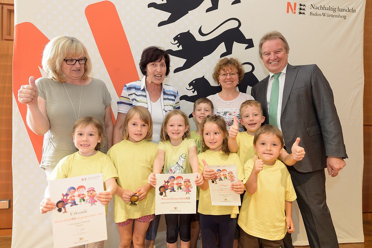 Am 27. Juli 2016 wurden in Stuttgart die Gewinner des diesjährigen Kleine Helden Wettbewerbs geehrt. Beim dem Wettbewerb konnten Kindergärten und Kindertagesstätten aus Baden-Württemberg eigene Ideen zu den verschiedenen Themen der Nachhaltigkeit „nachhaltig gärtnern“ und „Insektenhotel“ einreichen. Umweltminister Franz Untersteller überreichte die Siegertrophäen. Im Anschluss konnten die teilnehmende Erzieherinnen und Erzieher in verschiedenen Workshops noch detaillierte Einblicke in das Thema „nachhaltige Entwicklung“ gewinnen.