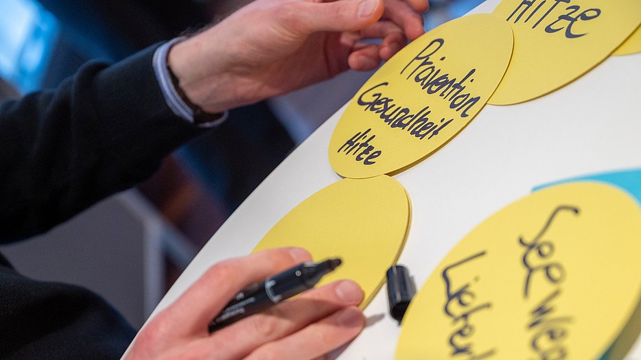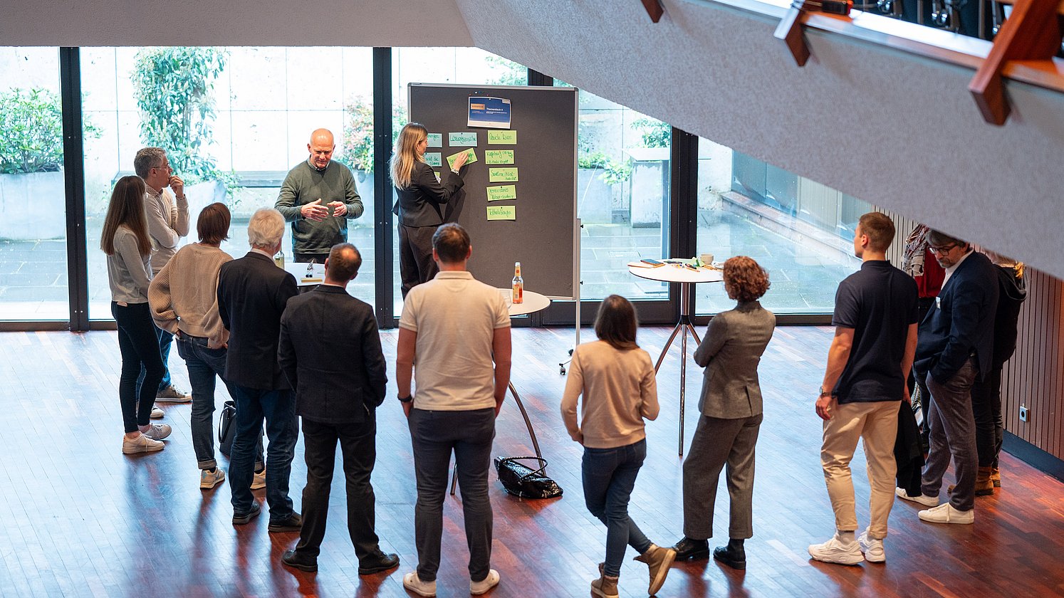 Im zweiten, interaktiven Teil des Workshops wurde an fünf Thementischen mit Fachexpertinnen und Fachexperten zu den Themen Wesentlichkeitsanalyse im Rahmen der THG-Bilanz, Klimaanpassung, Ressourcen und Kreislaufwirtschaft, Biodiversität und CSRD diskutiert.