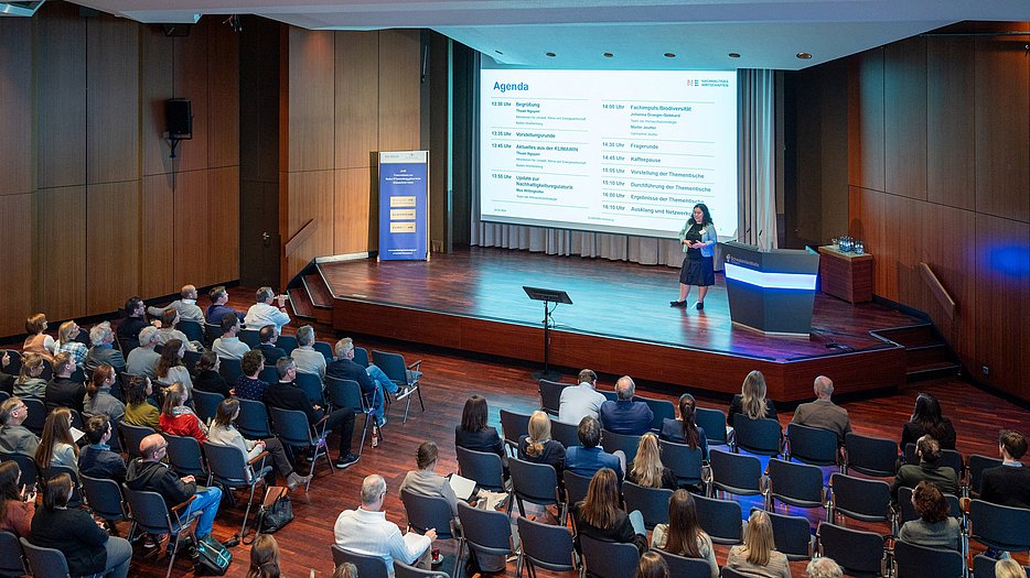 Die Mitglieder des Klimawin BW-Netzwerks wurden vom Ministerium für Umwelt, Klima und Energiewirtschaft Baden-Württemberg begrüßt. Nach den aktuellen Neuigkeiten zur Klimawin BW und einem Update zur Nachhaltigkeitsregulatorik folgte ein spannender Fachimpuls. Johanna Draeger-Gebhard, Team der Klimaschutzstrategie „Unternehmen machen Klimaschutz“, sprach über das Thema Biodiversität im Rahmen der CSRD und die Herausforderungen beim Reporting und der Datenerfassung. Zudem wies sie auf die zahlreichen Chancen und Innovationspotentiale für Unternehmen hin, eigene Maßnahmen zur Förderung der Biodiversität in den Klimaschutz- und Nachhaltigkeitsbemühungen zu verankern. Anschließend berichtete Martin Jeutter, Geschäftsführer des Gärtnerhof Jeutter, über seine Erfahrungen aus der Praxis. Neben Einblicken in erfolgreiche biodiverse Aufwertungen von Gewerbeflächen rief er die Teilnehmenden dazu auf, ihre Möglichkeiten an den jeweiligen Unternehmensstandorten zu nutzen, um zur Verbesserung des Mikroklimas beizutragen und den Erhalt der Artenvielfalt zu fördern.