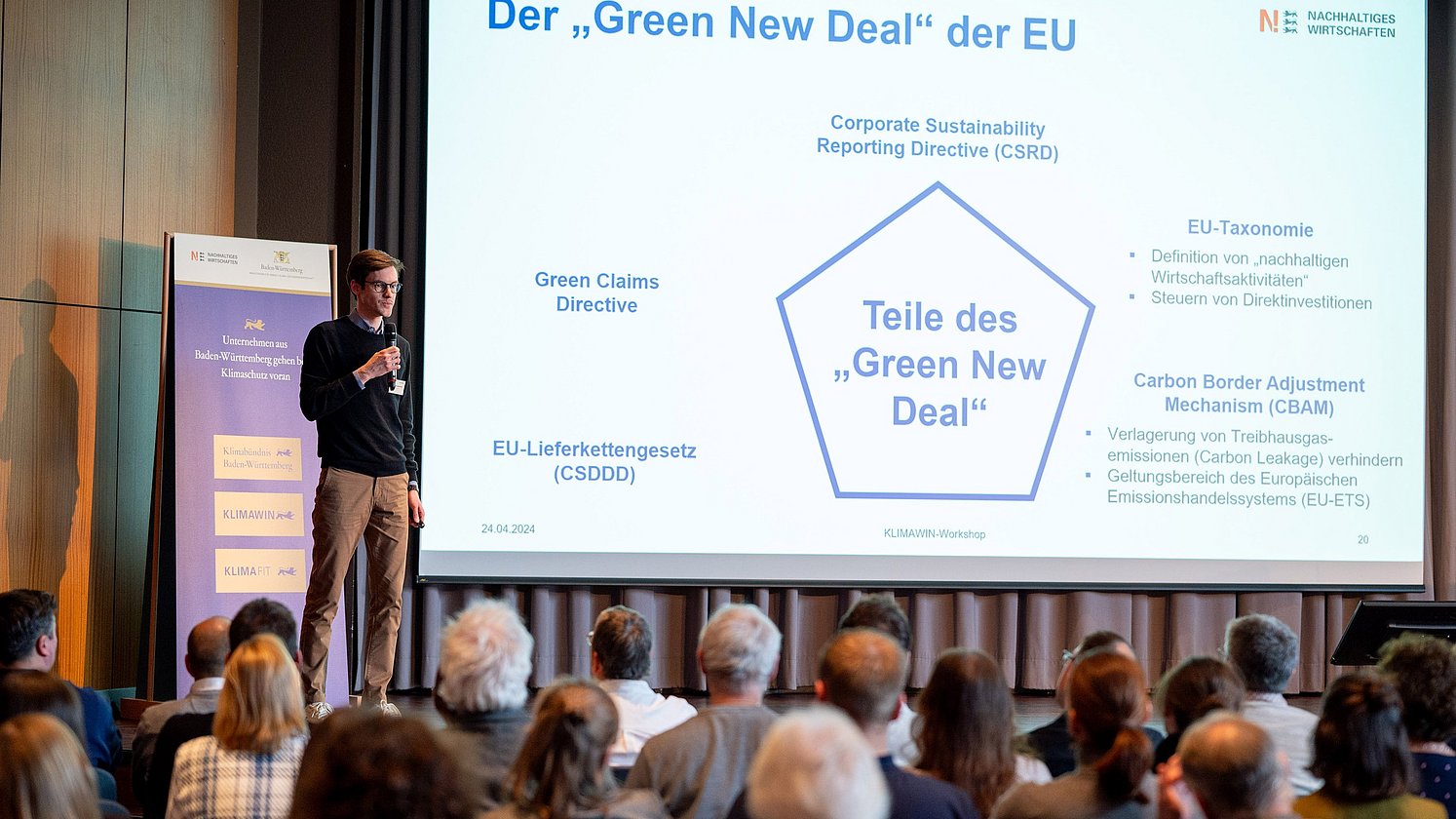 Am 24. April 2024 haben sich über 60 Unternehmensvertreterinnen und Unternehmensvertreter in der Schwabenlandhalle in Fellbach zu unserem zweiten Klimawin BW-Workshop versammelt.