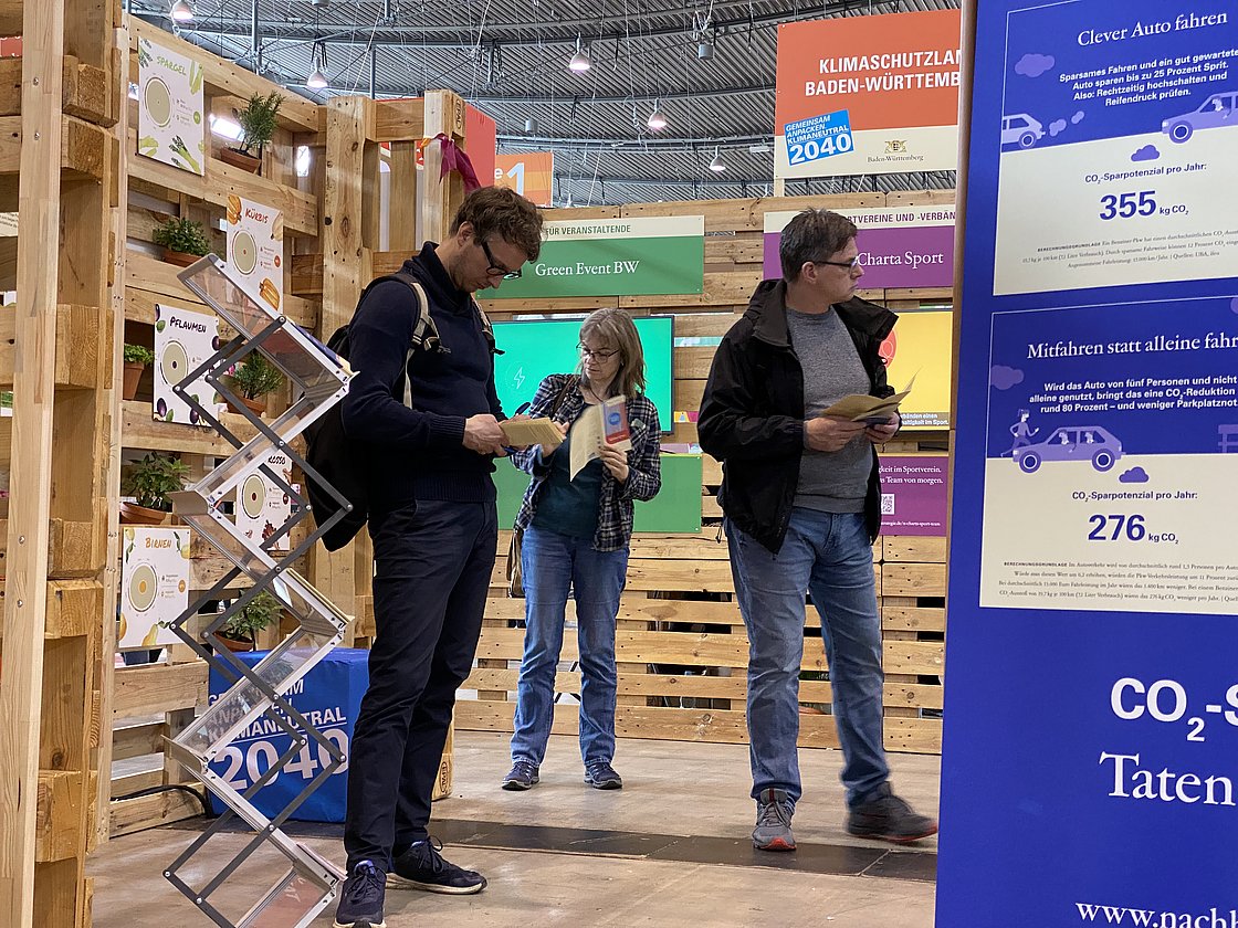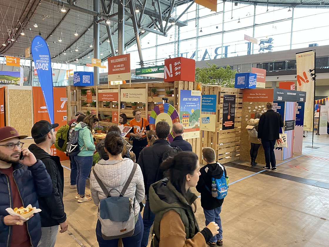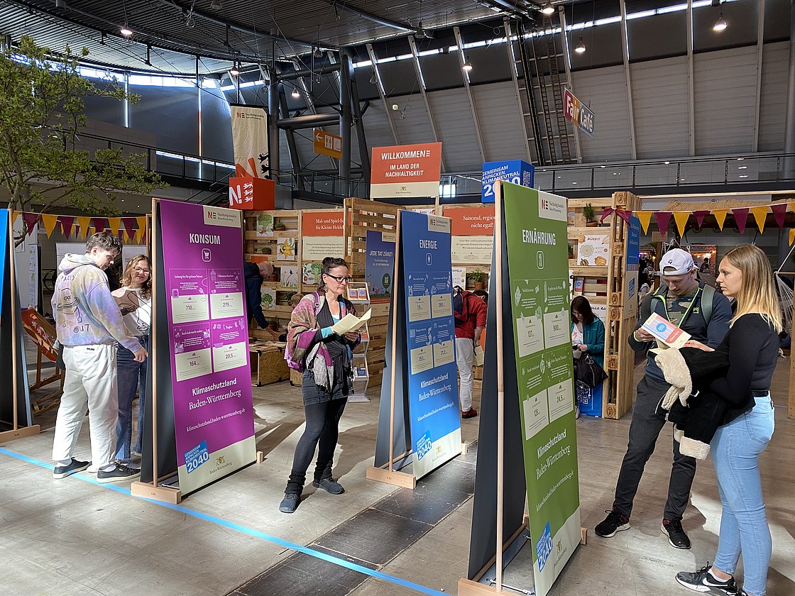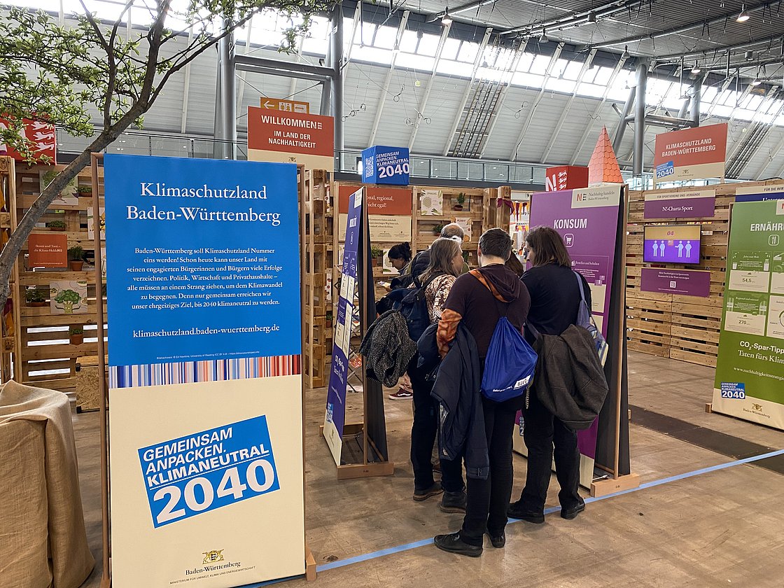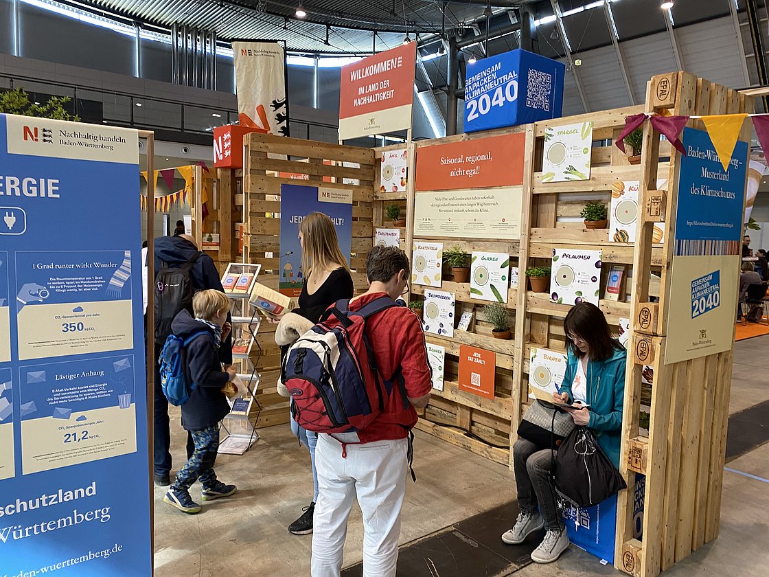 Rund 60.000 Besucherinnen und Besucher waren vom 13. bis 16. April in den Messehallen in Stuttgart. Der Informations- und Aktionsstand der Nachhaltigkeitsstrategie Baden-Württemberg innerhalb der Fair Handeln Messe drehte sich um das Thema Klimaschutz und bot viele CO2-Spartipps zu unterschiedlichen Alltagsthemen.