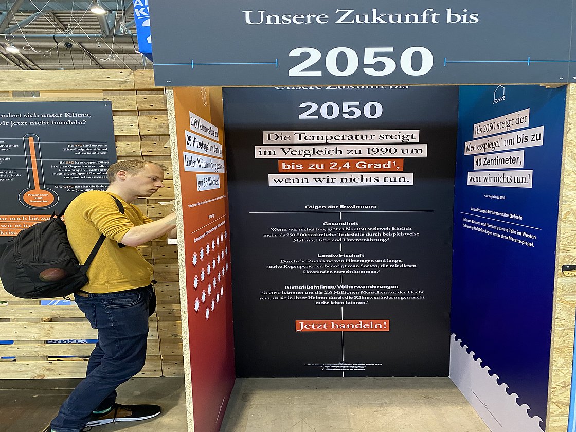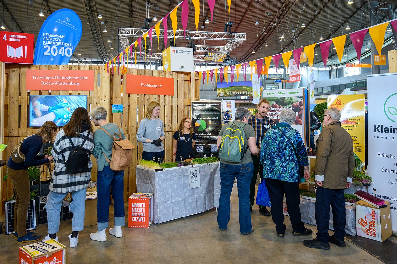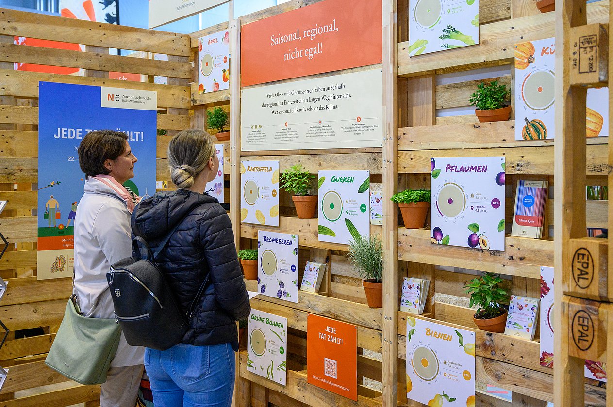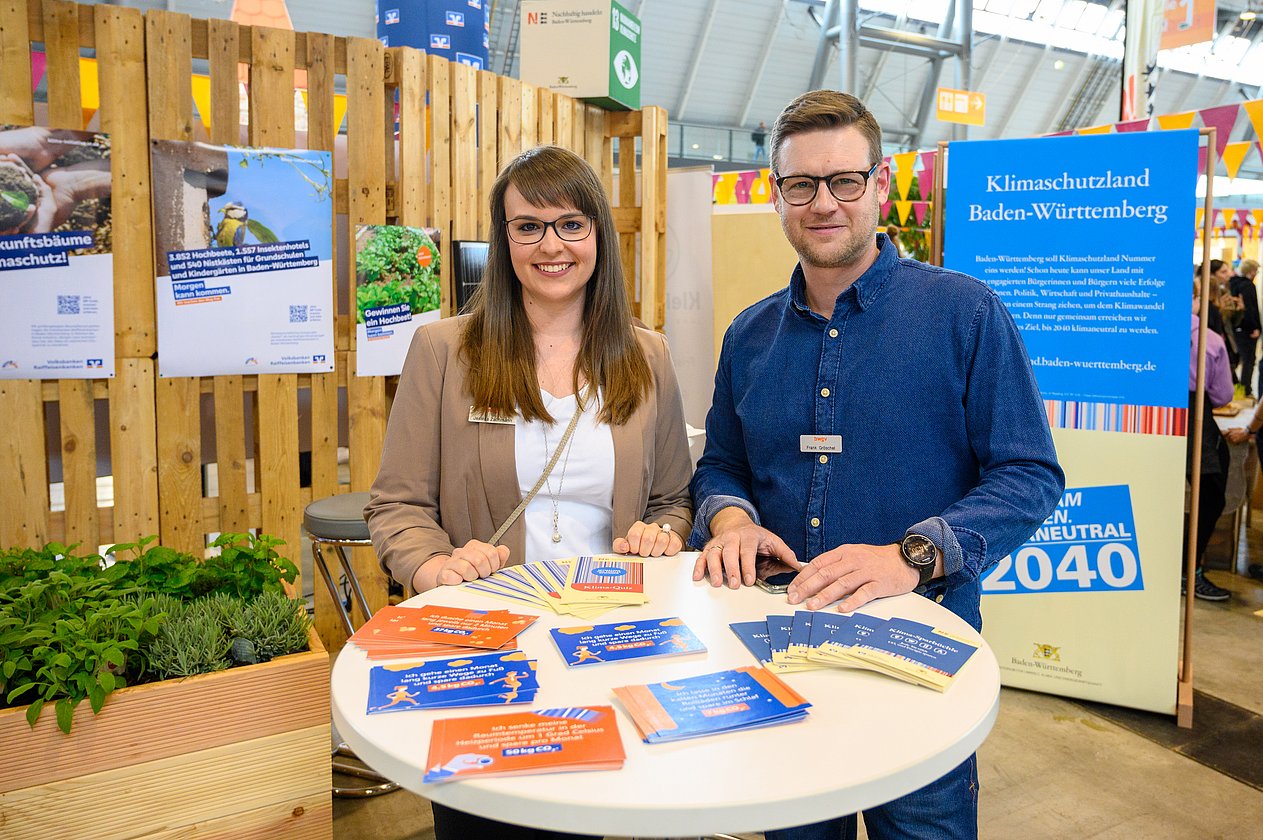 Rund 60.000 Besucherinnen und Besucher waren vom 13. bis 16. April in den Messehallen in Stuttgart. Der Informations- und Aktionsstand der Nachhaltigkeitsstrategie Baden-Württemberg innerhalb der Fair Handeln Messe drehte sich um das Thema Klimaschutz und bot viele CO2-Spartipps zu unterschiedlichen Alltagsthemen.