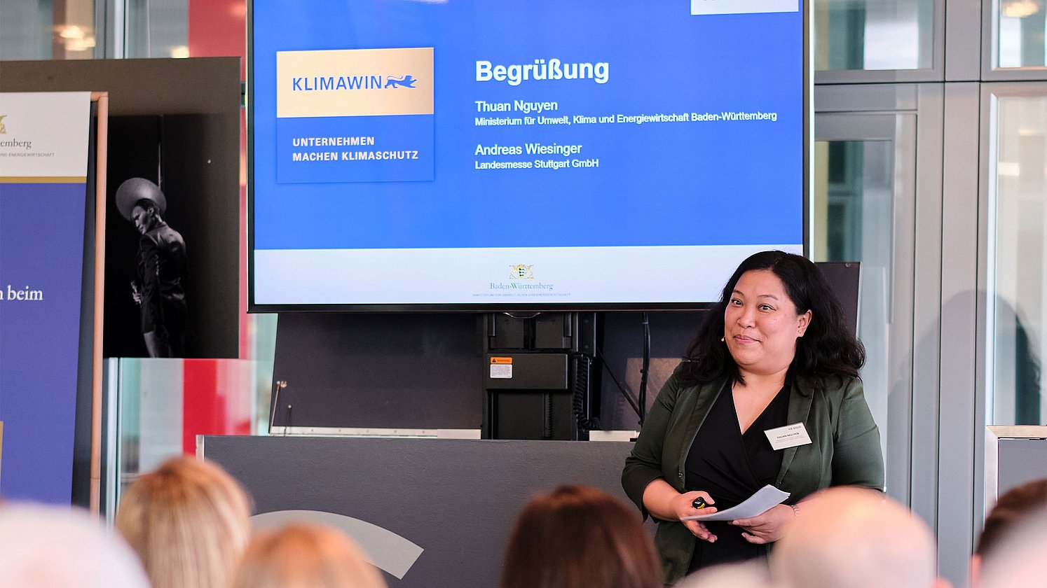 Nachhaltig Wirtschaften – wie das gelingt und welchen Mehrwert das Nachhaltigkeitsinstrument Klimawin BW Unternehmen in Baden-Württemberg bietet, wurde im Rahmen der Frühjahrsmessen am 4. April 2024 in Stuttgart thematisiert. Über 80 interessierte Vertreterinnen und Vertreter baden-württembergischer Unternehmen unterschiedlicher Branchen und Größen wurden durch das Ministerium für Umwelt, Klima und Energiewirtschaft Baden-Württemberg und Andreas Wiesinger, Mitglied der Geschäftsleitung der Messe Stuttgart, begrüßt.