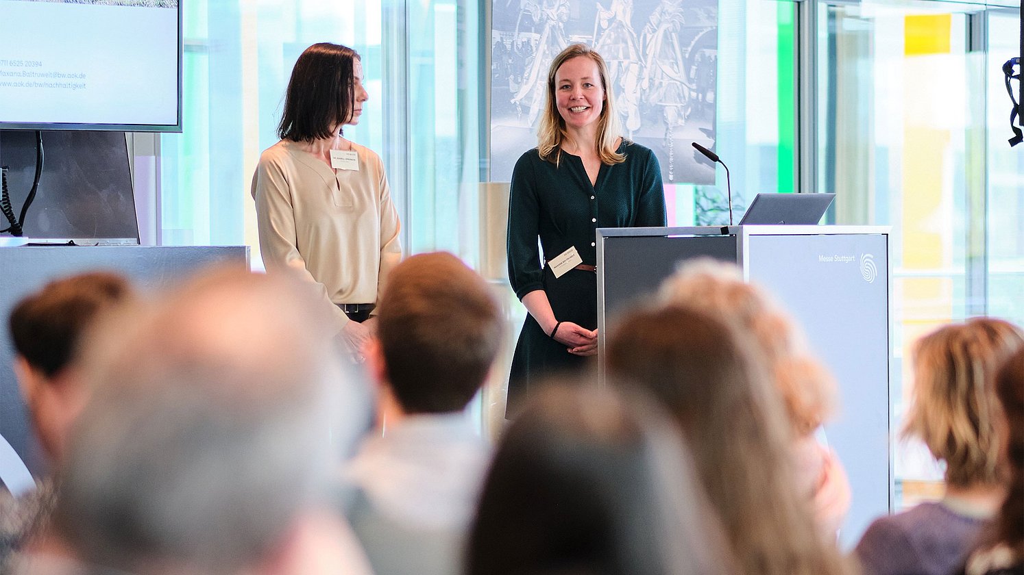 Maxana Baltruweit, Geschäftsbereichsleiterin Gesellschaftliche Verantwortung bei der AOK Baden-Württemberg, berichtete anschließend über Ihre Erfahrungen aus der Praxis. Neben Einblicken in den Nachhaltigkeitsbericht gab Sie den Teilnehmenden Tipps für die praktische Umsetzung und ermutigte die Unternehmen, die Kommunikationspotenziale des Klimawin BW-Netzwerks zu nutzen.