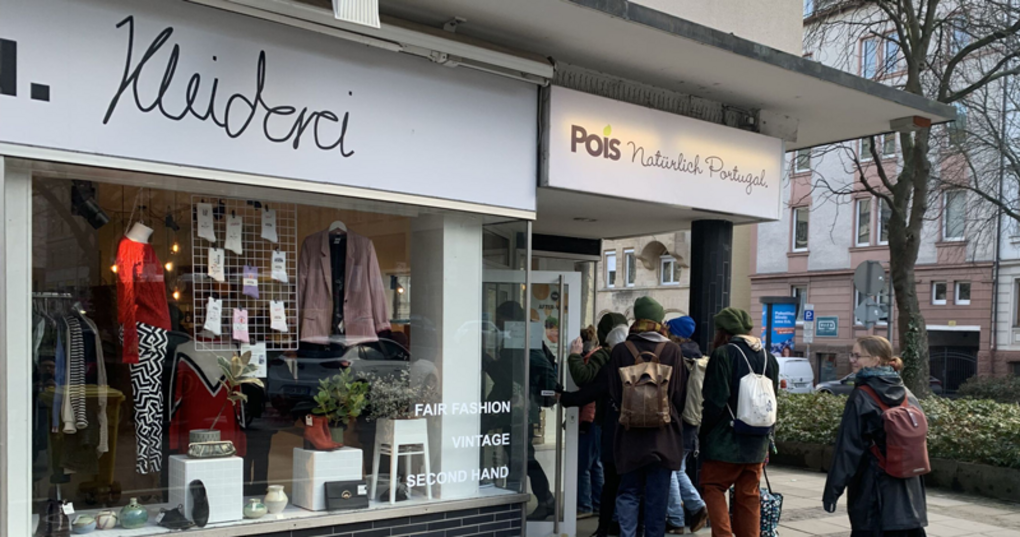 Seit vielen Jahren bieten wir als Junge Plattform der Nachhaltigkeitsstrategie unsere „nachhaltigen Stadtrundgänge“ durch Stuttgart an. Doch schon länger schaffen wir es gar nicht, alle Anfragen auch zu bedienen. „Die meisten Stadtrundgänge zu nachhaltigem Konsum machen wir mit Gruppen von Schulen oder Freiwilligendiensten“, sagt Anna, die die Tour der Jungen Plattform mitkonzipiert hat. „Aber eigentlich kommen Anfragen von Menschen jeden Alters. Und immer wieder bieten wir auch offene Touren an, sodass sich alle Interessierten anmelden können“.