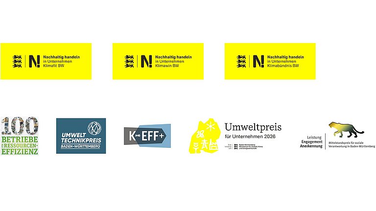 Dazu zählen unter anderem der Wettbewerb „Allianz Industrie 4.0 Award“ (ehemals „100 Orte für Industrie 4.0“), die Landesinitiative „100 Betriebe für Ressourceneffizienz“ und der Umweltpreis. Diese Formate stellen Beispiele vorbildlicher Betriebe vor, um andere Unternehmen zu motivieren. Die vielfältigen Fördermaßnahmen für die baden-württembergischen Unternehmen haben das Ziel, zu einem sparsamen Umgang mit Ressourcen und Innovationen in den Handlungsfeldern der klimaneutralen und nachhaltigen Produktion beizutragen.
