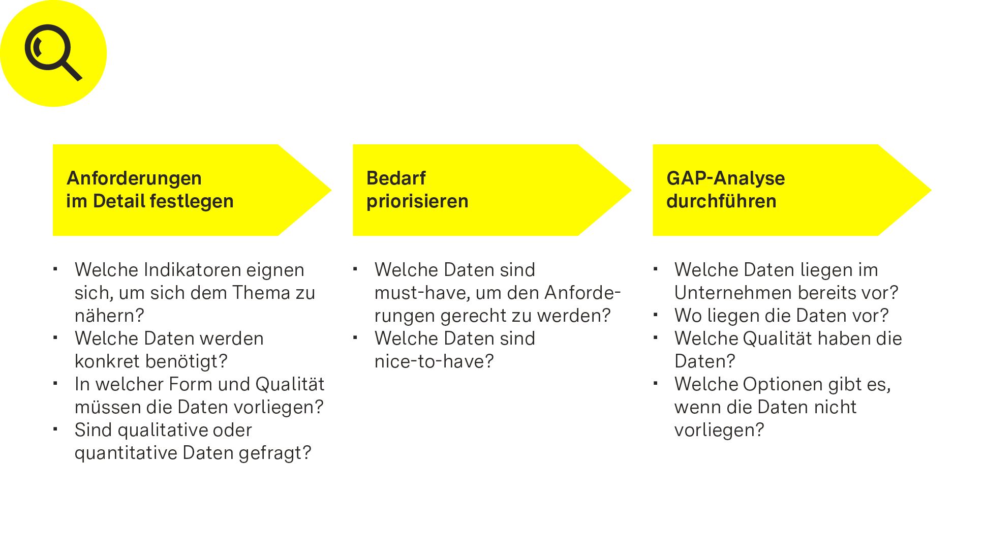 Für fast alle Anlässe, die zur Nachhaltigkeitsberichterstattung führen, gibt es konkrete Rahmenwerke und Anforderungen. Sie beschreiben, welche Daten konkret benötigt werden, in welcher Form die Daten vorliegen müssen und ob sie notwendig oder optional sind.