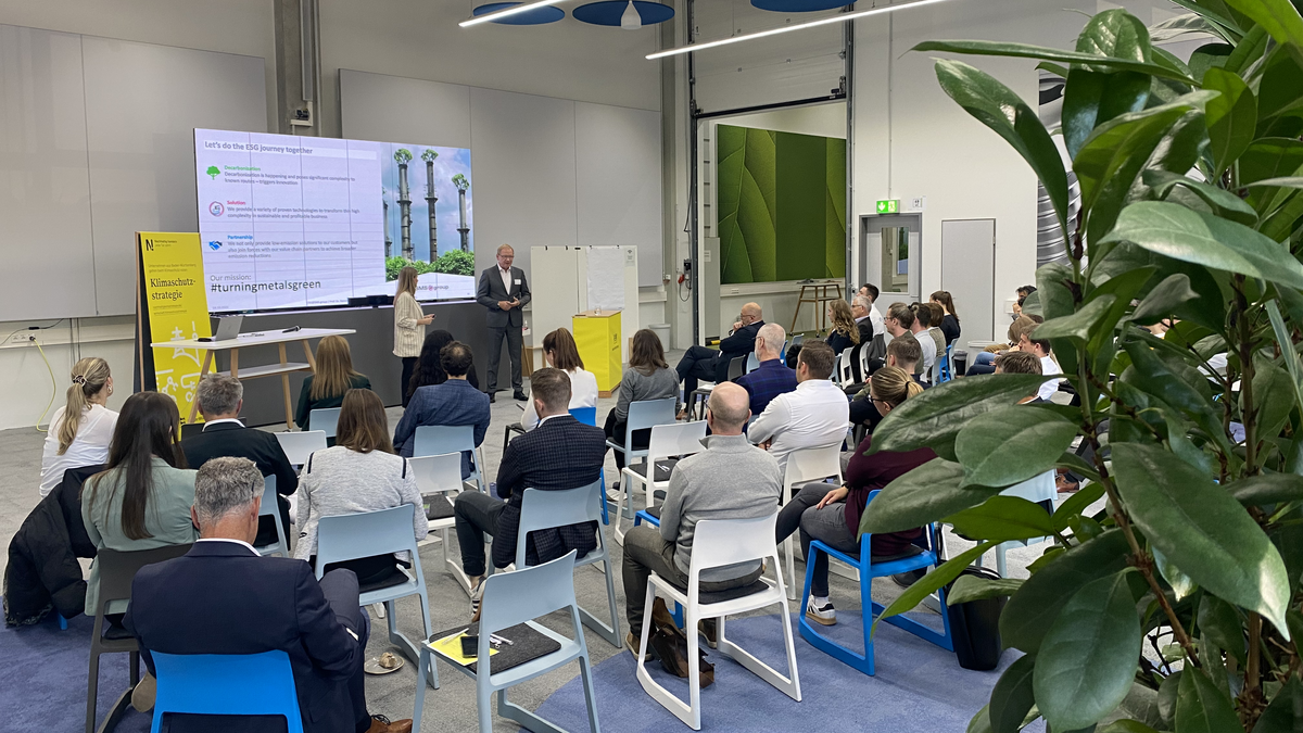 Bei schönstem Herbstwetter begrüßten Thuan Nguyen vom Ministerium für Umwelt, Klima und Energiewirtschaft und Bernd Weidner, Geschäftsführer der ARNOLD UMFORMTECHNIK GmbH & Co. KG, die Teilnehmenden. Anschließend gab Prof. Dr. Rainer Lindner, Mitglied des Aufsichtsrats der SMS Group GmbH, einen Überblick über die Bedeutung der Stahlindustrie sowohl für die Wirtschaft als auch den Klimaschutz und sprach zu den Möglichkeiten der Zusammenarbeit in der Lieferkette zum Erreichen von Klimazielen. Olga Demchenko, Expertin für Klimaschutz und Nachhaltigkeit in der Stahlbranche, informierte darüber, wie Grüner Stahl zum Klimaschutz beitragen kann. Zudem zeigte Michael Pult, Leiter Marketing und Sustainability der ARNOLD UMFORMTECHNIK GmbH & Co. KG, auf, wie jede Schraube ein Klimaschützer sein kann. In der anschließenden Panel-Diskussion wurden weitere Perspektiven, Ansätze und Lösungen thematisiert.
